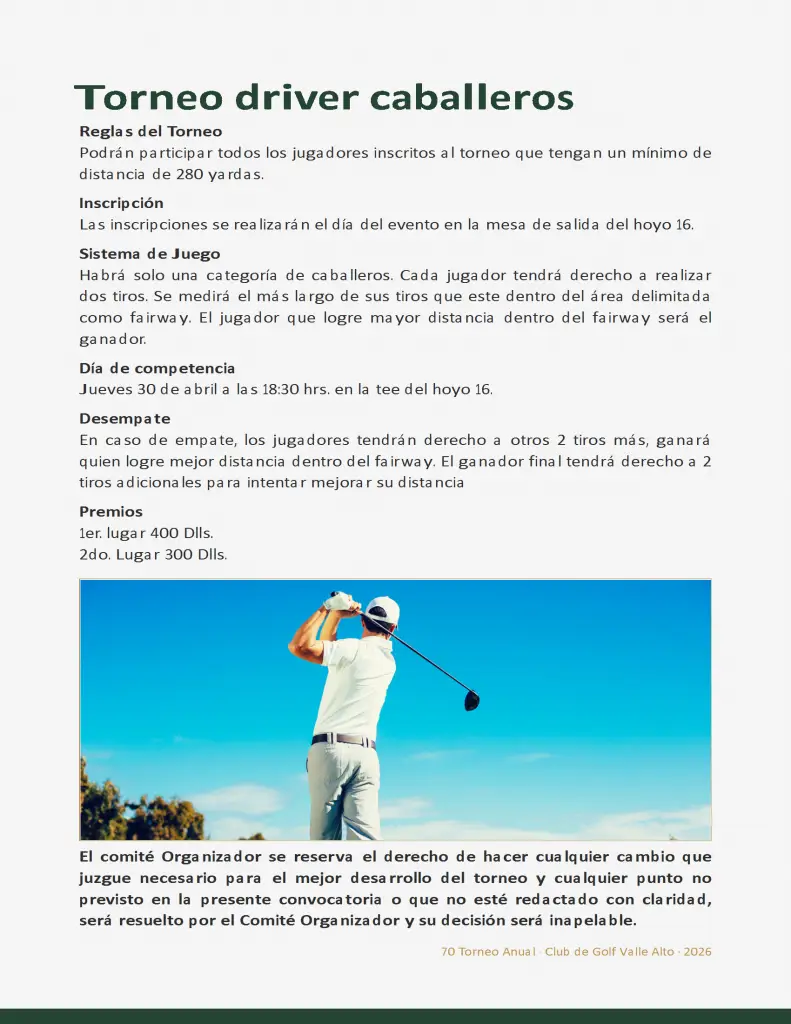 TORNEO DE DRIVE DAMAS Y CABALLEROS